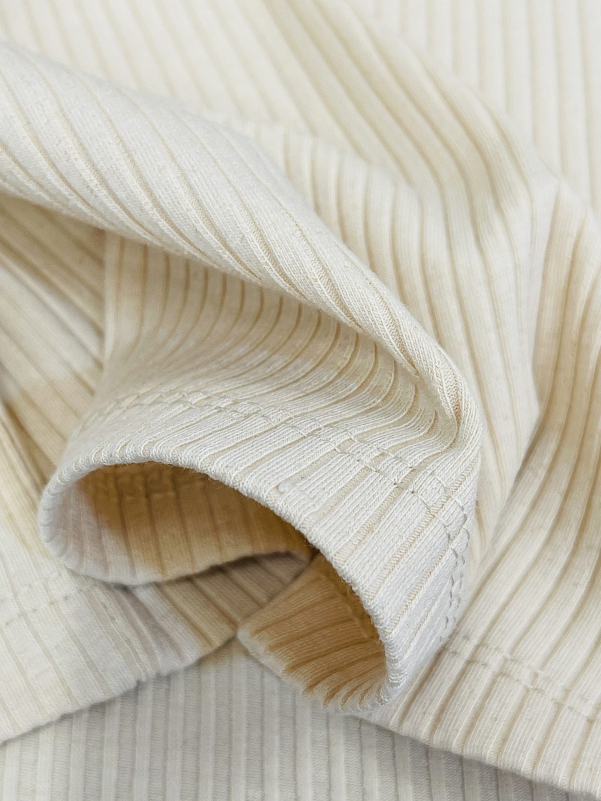 جنس این بلوز از پارچه کبریتی اعلاء (Ribbed Fabric) انتخاب شده است. پارچه‌های کبریتی به دلیل بافت راه راه عمودی خود، علاوه بر اینکه اندام را لاغرتر و کشیده‌تر نشان می‌دهند، خاصیت کشسانی (الاستیسیته) بسیار بالایی دارند.